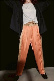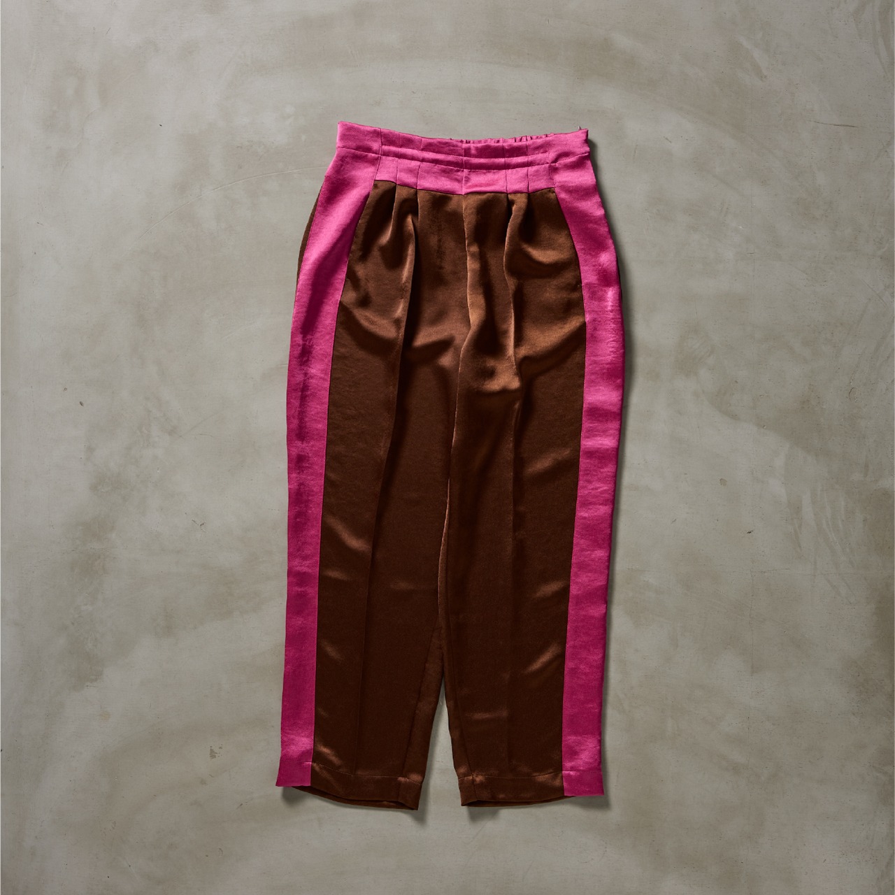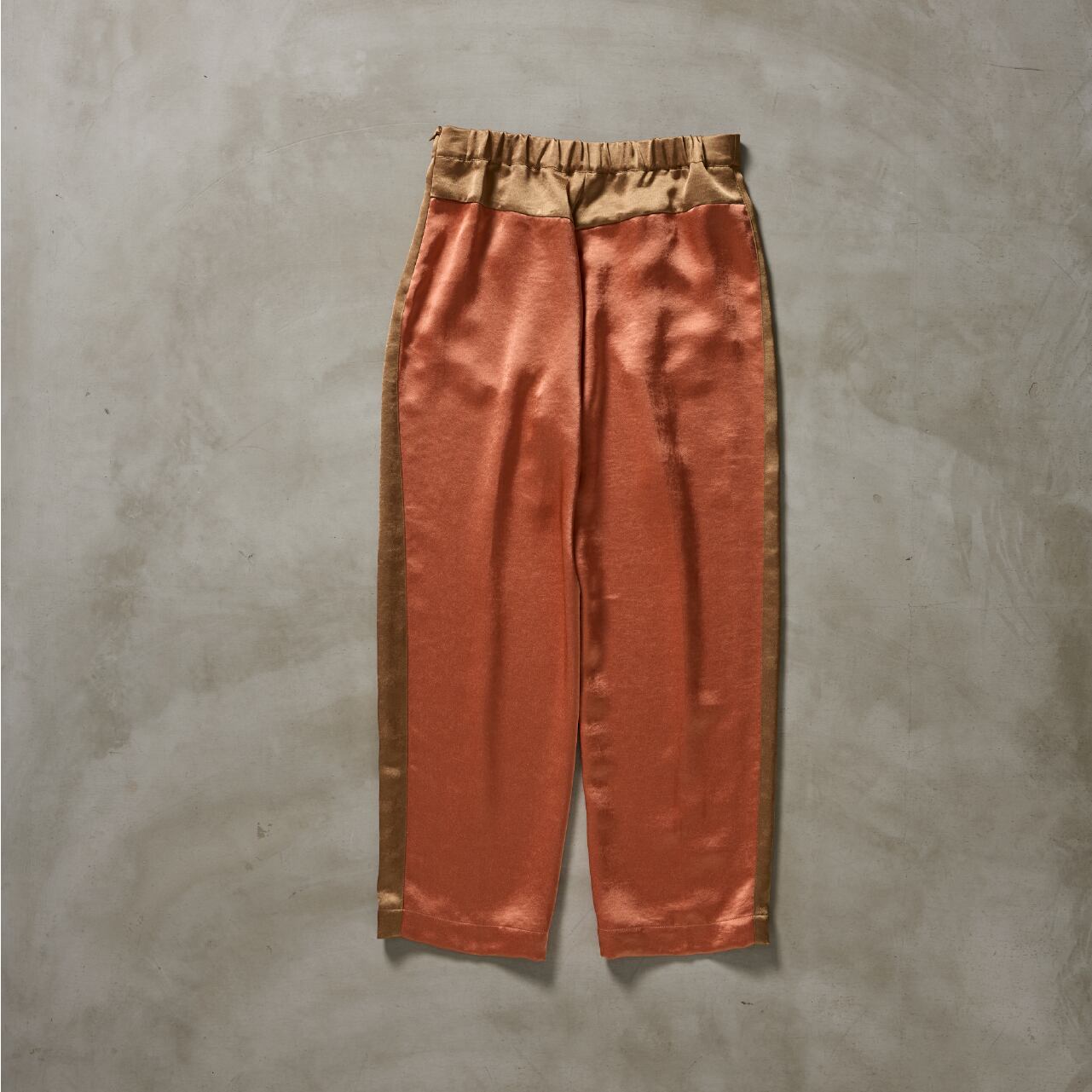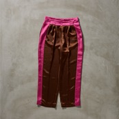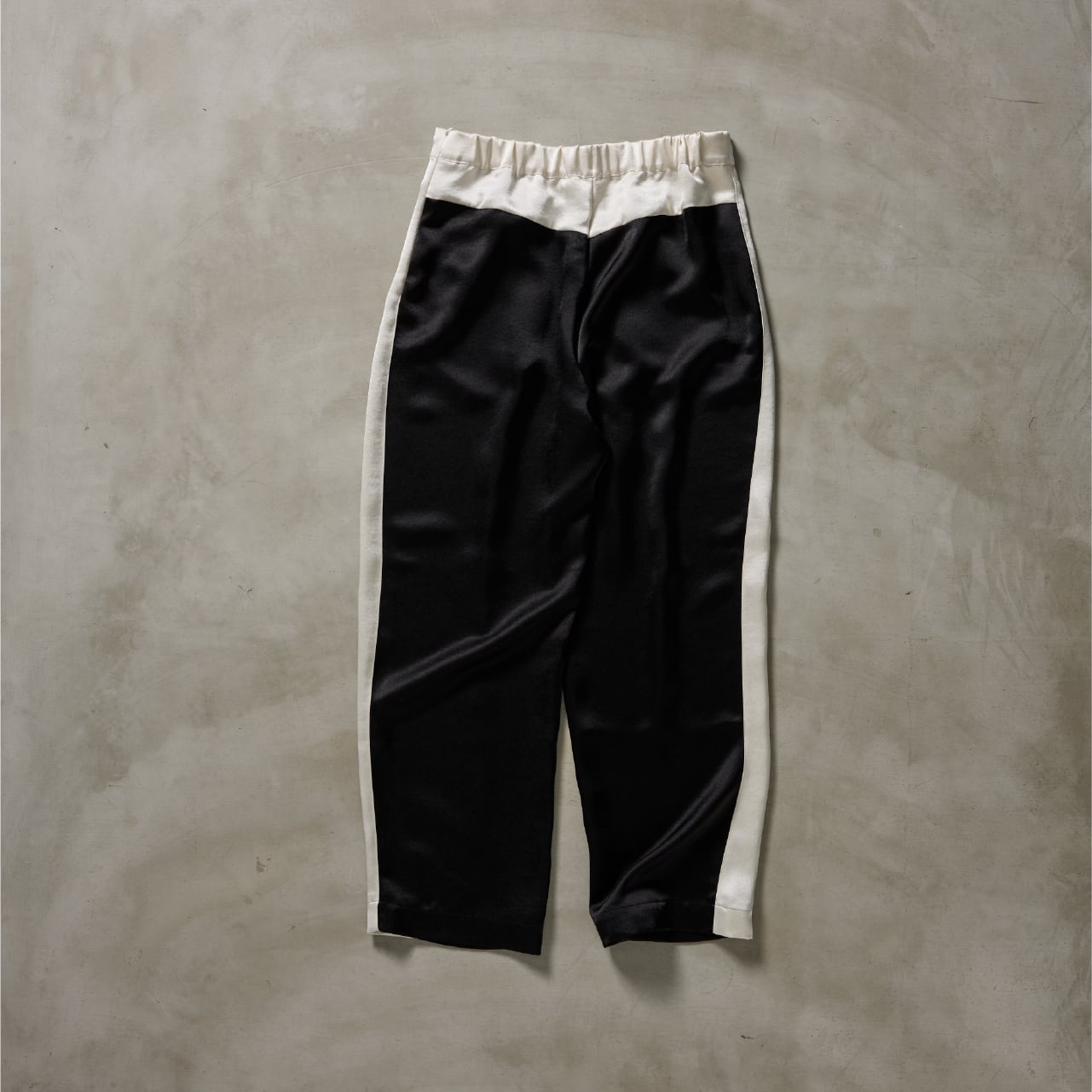 その生地を活かして仕立てた、バイカラーのライン入りドレスイージーパンツ。