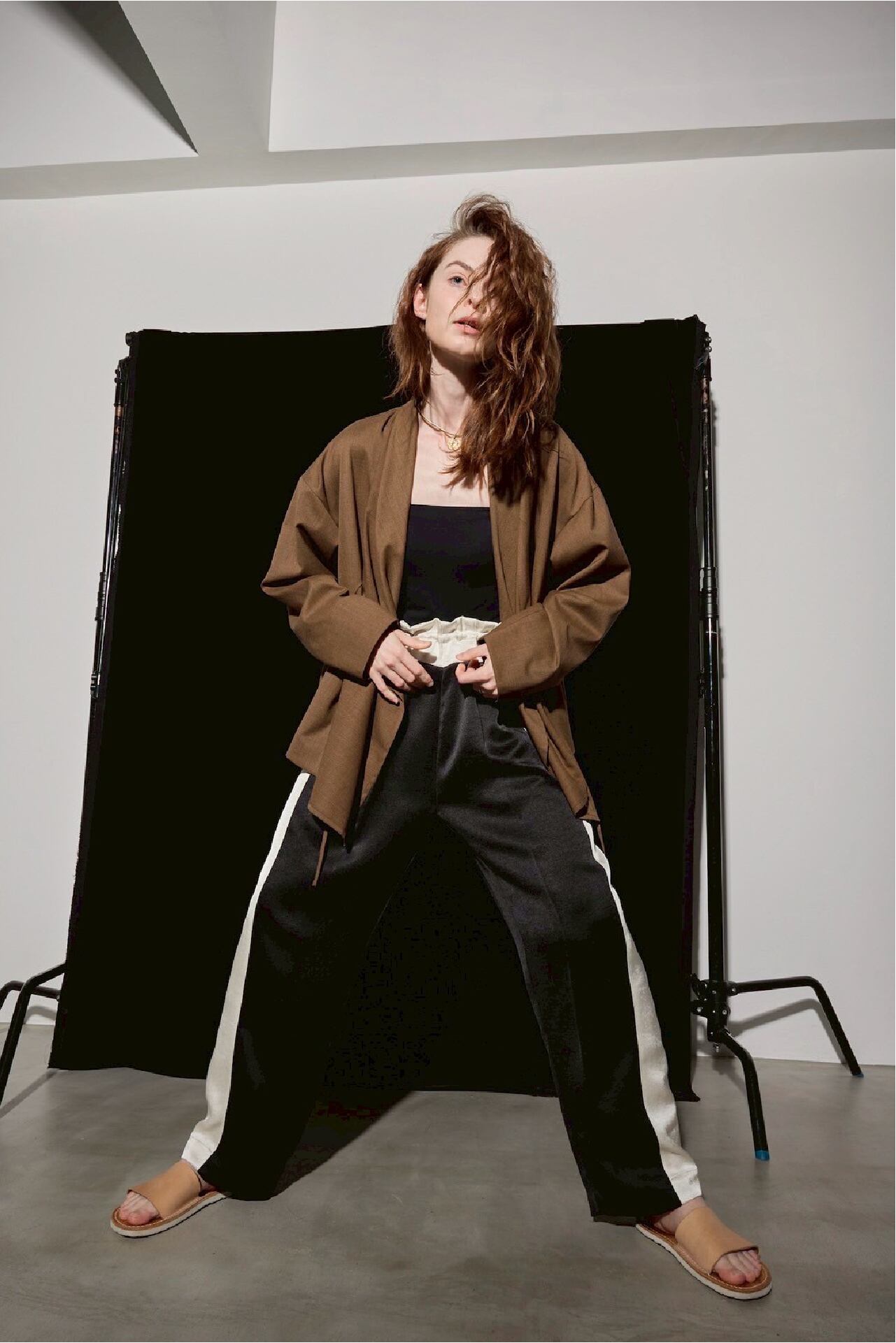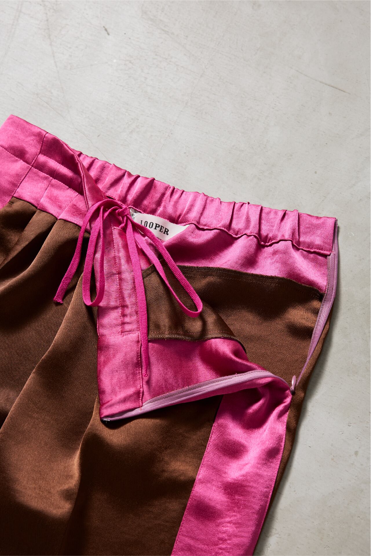 後ろウエストにはゴムを入れつつも、ヒップから裾にかけて美しく落ちるシルエットにこだわっています。