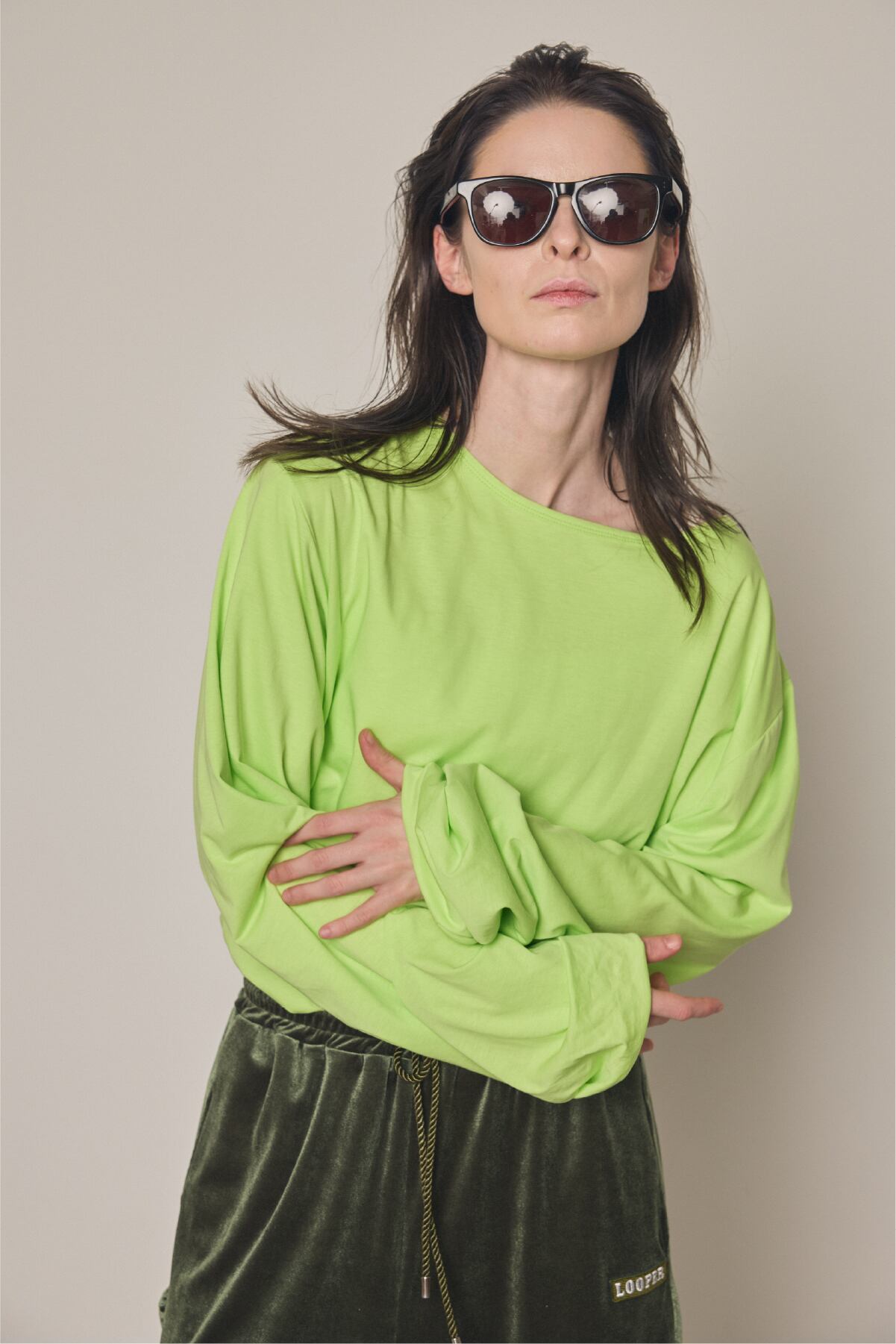 袖も身頃も2重にしており空気に包まれたような、締め付けの感じない大人の贅沢なロングスリーブです。